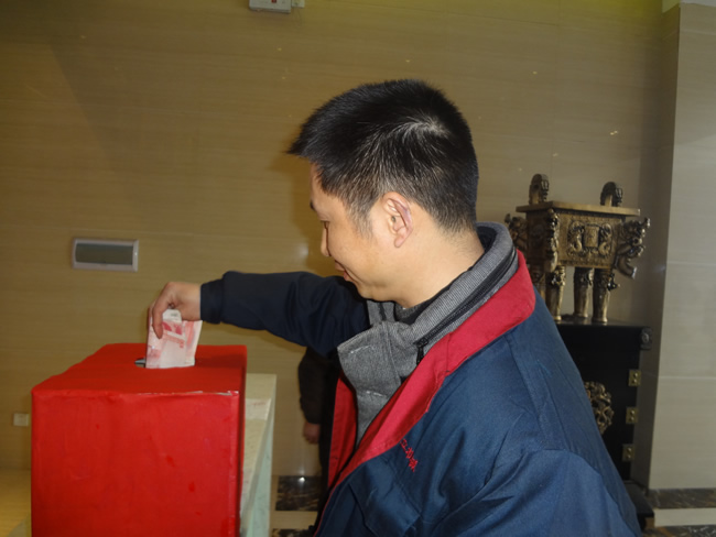 3月12日的中午,在公司領導的關心和倡議下,向全體員工發(fā)起了為小張(化名)同志獻愛心捐款的倡議。 小張是本公司生產部員工,因小孩突發(fā)疾病而入院,昂貴的手術費和醫(yī)藥費對本來就不富裕的一家無疑是雪上加霜。得知這一情況后,公司高層管理立即發(fā)出獻愛心