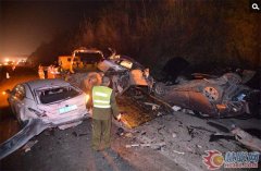 失控大罐車追撞18輛小車致8死26傷現(xiàn)場慘烈 救援現(xiàn)場 2013年12月8日下午4時許,成自瀘高速自貢往成都方向仁壽段(距仁壽出口33公里處)突發(fā)一起慘烈車禍,19輛車連環(huán)追尾相撞,不同程度損毀。據(jù)仁壽消防部門獲悉,目前現(xiàn)場救援已經(jīng)結束,事故已造成8死26傷。目...