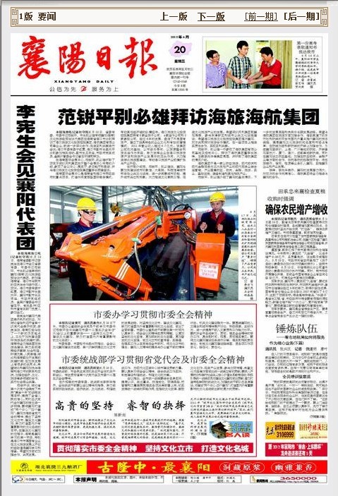- 關(guān)于襄陽(yáng)日?qǐng)?bào)版刊登我廠發(fā)展情況,其他人還感興趣的是: